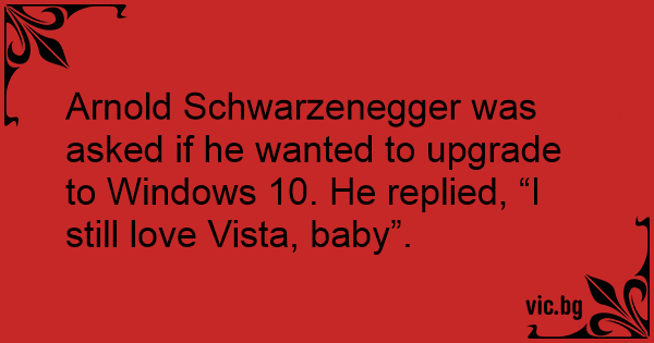 About Press Copyright Contact us Creators Advertise Developers Terms Privacy Policy Safety How YouTube works Test new features Press Copyright Contact us Creators. They told me to upgrade to windows 7 But I still love vista baby - arnold schwarzenegger. Directed by Michael Fimognari.
