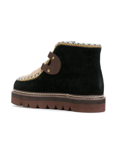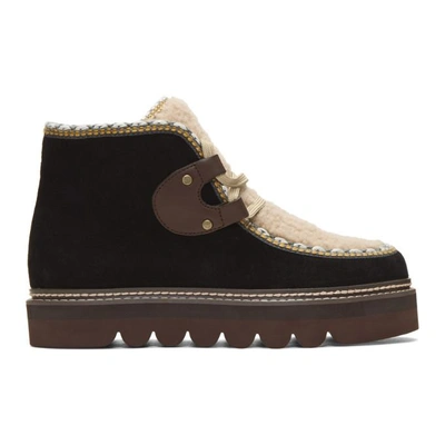 Free 2-3 day shipping and returns 30 day price match guarantee. Shop See By Chloé Eileen Platform Bootie In Black from 400 stores starting at 435. A street-chic take on the vintage hiking boot is crafted of velvety lambskin leather with a contrasting padded collar and a bold crepe-like platform and block heel.